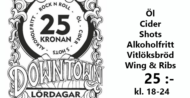 Ikväll kommer rockbaren DownTown testa något nytt och intressant. De kör nämligen på Klubb 25 kronan. Ett koncept som går ut på att du kan köpa öl, cider, shots och mindre måltider för endast 25 kronor. Dessa priser kommer att gälla mellan 18-24. Evenemanget spreds ute på Facebook, och flera människor i Falkenberg verkar vara intresserade av att besöka till DownTown ikväll.